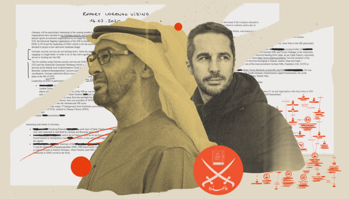 Secondo le inchieste di Mediapart e del consorzio European Investigative Collaborations (Abu Dhabi Secrets), tra 2017 e 2020 gli EAU hanno finanziato una società di intelligence privata svizzera (ALP Services), con oltre 5,5 milioni di euro, per produrre dossier contro più di 1.000 attivisti, studiosi e istituzioni islamiche in Europa.