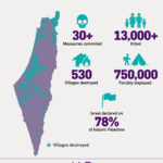 Alla fine della guerra, le forze sioniste avevano ucciso 13.000 Palestinesi, distrutto e spopolato circa 530 villaggi e città, commesso almeno 30 massacri ed espulso 750.000 persone.