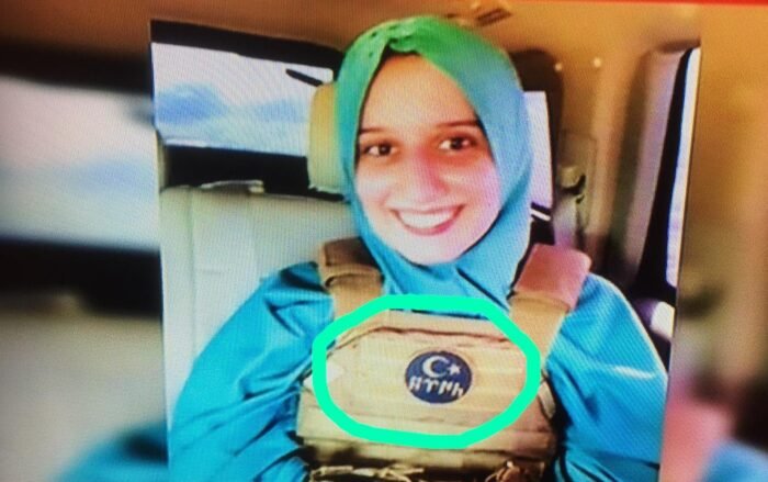 Nell’immagine diffusa dalla stampa turca si vede Silvia Romano a bordo di un’auto, sorridente mentre indossa un giubbotto antiproiettili con l’emblema dei servizi turchi.